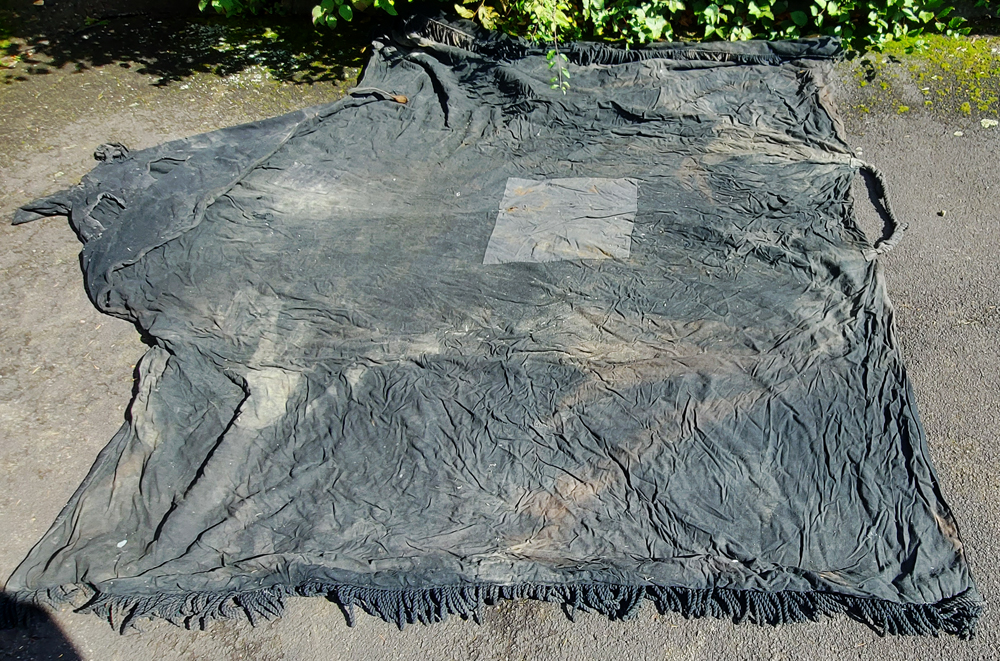 Bevor es eine Leichenhalle gab, wurden die Toten zu Hause abgeholt, wo sie zum Teil bis zu drei Tagen lagen. Die Fenster wurden mit in Essig getränkten Tüchern verhängt. Das sollte gegen den Geruch und gegen die Fliegen helfen. Die engsten Hinterbliebenen mussten eine bestimmte Zeit tief schwarz tragen, die Witwen manchmal mehrere Jahre. Die Witwe trug ein Trauermäntelchen. Das abgebildete ist fein plissiert ähnlich wie die Trachtenröcke. Dabei wurde der Stoff in schmale Falten gelegt und auf der Rückseite vernäht. Die Herstellung war langwierig. Diese Stücke wurden vererbt. Der Trauermantel stammt aus der höfischen Kultur.